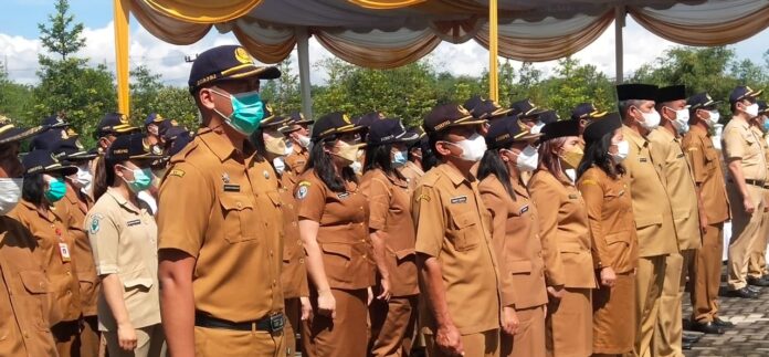 Simalungun, Lintangnews.com | Bupati Simalungun, Radiapoh Hasiholan Sinaga diwakili Sekretaris Daerah (Sekda), Esron Sinaga melantik dan mengukuhkan 273 orang pejabat administrator dan pengawas, bertempat di halaman kantor Bupati di Pamatang Raya, Rabu (9/3/2022).