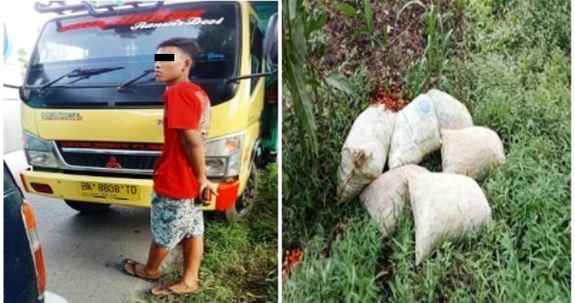 Sekira pukul 15.00 WIB, tim pengamanan melihat 1 unit truk nopol BK 8808 TD dari arah Afdeling I melintas di Jalan Asahan, Nagori Sahkuda, Kecamatan Gunung Malela, Kabupaten Simalungun dan menurunkan sebanyak 6 goni brondolan sawit.