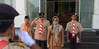Pelepasan Kontingen Gerakan Pramuka menuju Kemah Kaldera Toba III, dr Susanti...