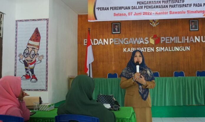 Simalungun, Lintangnews.com | Badan Pengawas Pemilihan Umum (Bawaslu) Kabupaten Simalungun menggelar sosialisasi pengawasan partisipatif dengan tema ‘Peran Perempuan Dalam Pengawasan Pemilu Tahun 2024’ di Aula kantor Bawaslu, Selasa (7/6/2022).
