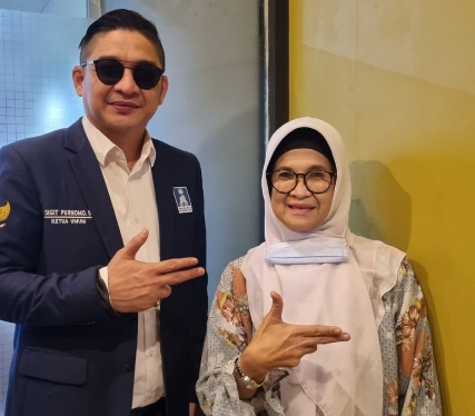 Siantar, Lintangnews.com | Ketua DPD PAN Pematang Siantar, Susanti Dewayani, saat di Bandara Udara Internasional Sultan Mahmud Badaruddin II bertemu dan bercengkerama dengan Ketua Umum DPP Barisan Muda (BM) PAN, Sigit Purnomo Said alias Pasha Ungu, Jumat (7/7/2023).