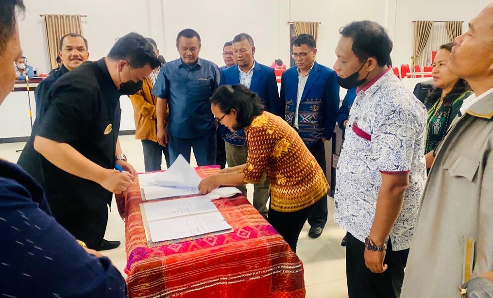 Itu ditandai dengan penandatanganan persetujuan bersama antara Bupati, Vandiko T Gultom dengan DPRD Samosir, Minggu (24/7/2022).
