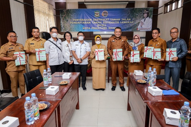 Siantar, Lintangnews.com | Sebanyak 275 Sertifikat Tanah Jalan di Kota Siantar melalui Pendaftaran Tanah Sistematis Lengkap (PTSL) diserahkan Badan Pertanahan Nasional (BPN) kepada Pemko Siantar.