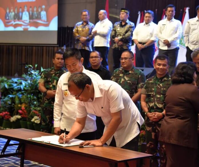 Humbahas, Lintangnews.com | Bupati Humbang Hasundutan (Humbahas), Dosmar Banjarnahor ikuti deklarasi Pemilu damai dan penandatanganan kesepakatan pendanaan bersama Pilkada serentak 2024 di Hotel Grand Mercure Maha Cipta, Kota Medan, Rabu (27/9/2023).