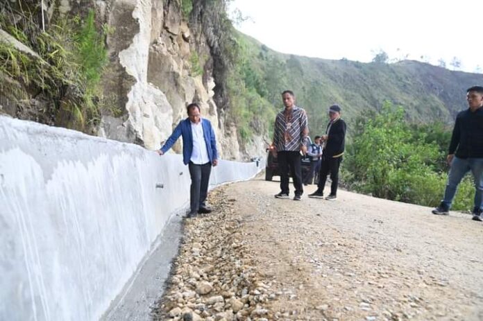 Kemudian meninjau pembangunan penanganan long segment Pollung-Riaria-Buhit batas Samosir.