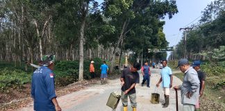 Warga Dolok Maraja Gotong Royong Tambal Jalan Berlubang