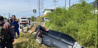 Mobil Pegawai PDAM Tirta Lihou Terbalik Di Simpang Tol Sinaksak