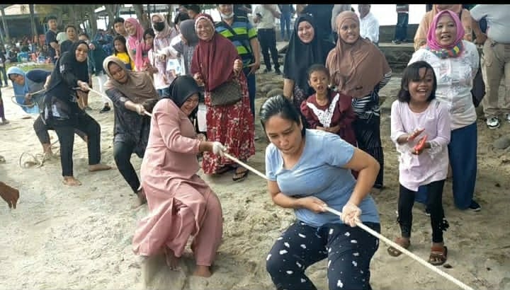 Suad istri wartawan PWI Asahan saat menghadapi tim Medan di perlombaan tarik tambang Family Gathering PWI Sumut 2022.