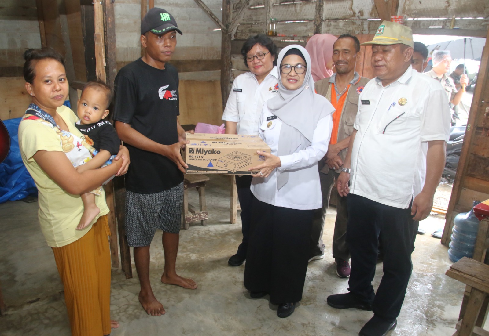 Bantuan yang diberikan berupa steling, kompor, gelas, papan, broti, seng, medical kit, perlengkapan bayi, peralatan kebersihan, matras, selimut, sembako, serta tali asih.