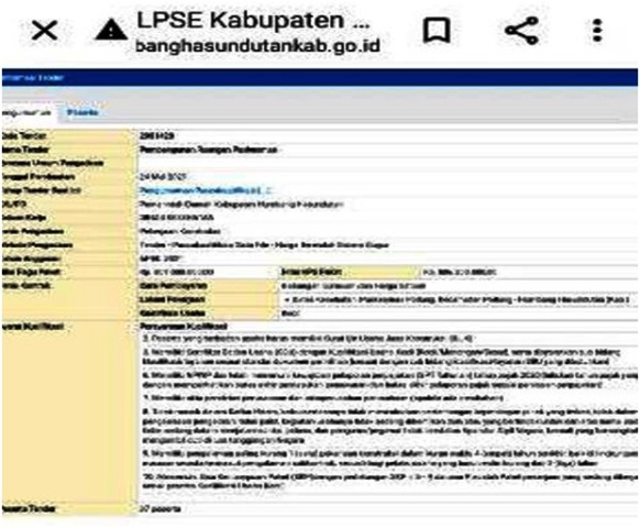 Salah satu kegiatan proyek yang ditayangkan di LPSE Kabupaten Humbang Hasundutan.
