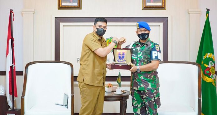 Medan, Lintangnews.com | Wali Kota Medan, Muhammad Bobby Afif Nasution menerima kunjungan Danpomdam l/BB Kolonel Cpm Anggiat Napitupulu di ruang kerjanya di kantor Wali Kota Medan, Jalan Kapten Maulana Lubis, Selasa (21/12/2021) sore.
