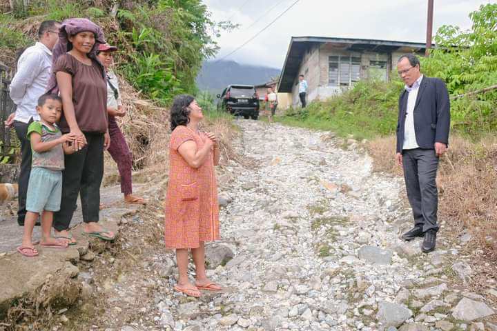 Saat Bupati dan rombongan meninjau jalan yang akan dihotmix, salah seorang ibu rumah tangga (IRT), Timorita Debataraja langsung menjumpai dan menyalami orang nomor 1 di Humbahas itu mengucapkan terima kasih.