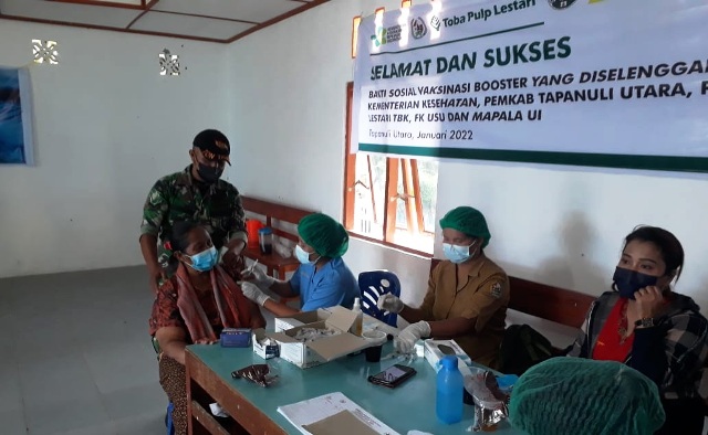 Taput, Lintangnews.com | Dalam upaya mendukung pemerintah untuk memutus mata rantai penularan Covid-19 varian terbaru Omicron dan mencapai herd immunity (kekebalan kelompok), PT Toba Pulp Lestari Tbk (TPL) menyelenggarakan vaksinasi jenis Booster tahap III pada masyarakat di wilayah pariwisata di Provinsi Sumatera Utara.