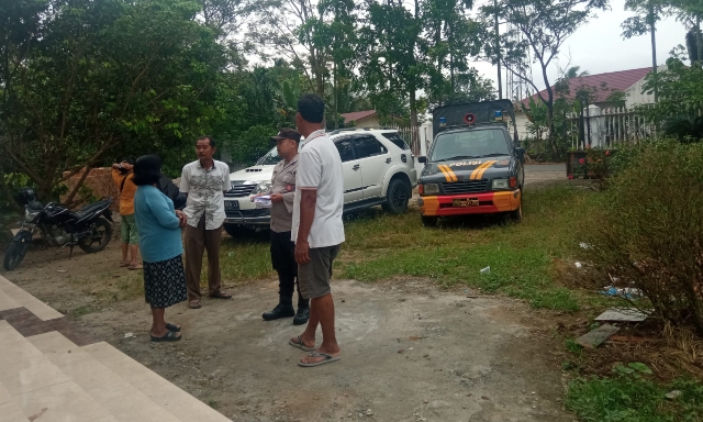 Petugas Polsek Rambutan, Aipda D Simarmata dan FD Sihombing turun melihat lokasi kebongkaran Gereja. (Purba)