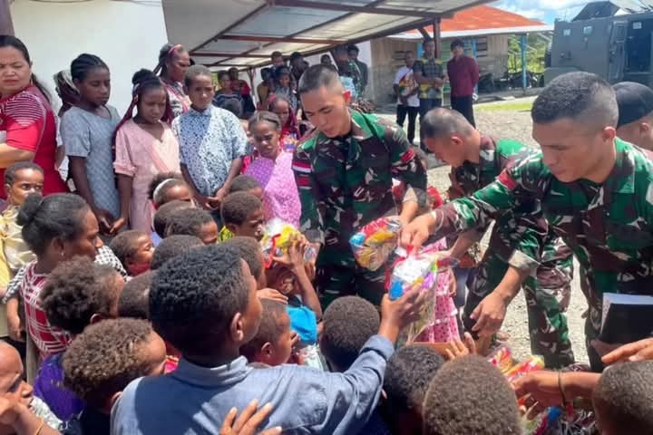 Hadir Membawa Kebahagiaan, Satgas Yonif 503 Kostrad Bagikan Bingkisan Untuk Anak Papua