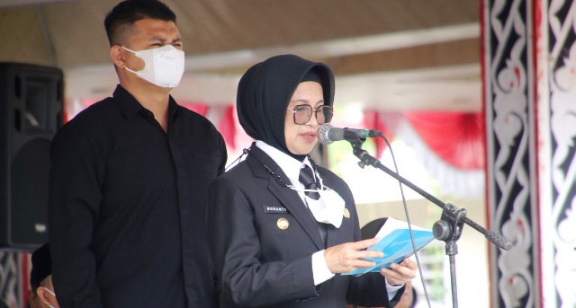 Susanti sebagai Irup membacakan pidato Menteri Pemuda dan Olahraga (Menpora) Zainudin Amali.