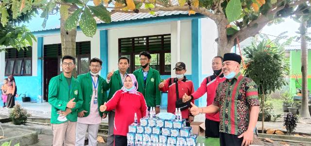 Puluhan mahasiswa-mahasiswi UINSU yang dipimpin Zainul Haq berkolaborasi dengan para perangkat desa aktif membagikan kepada pengguna jalan yang tak memakai masker.