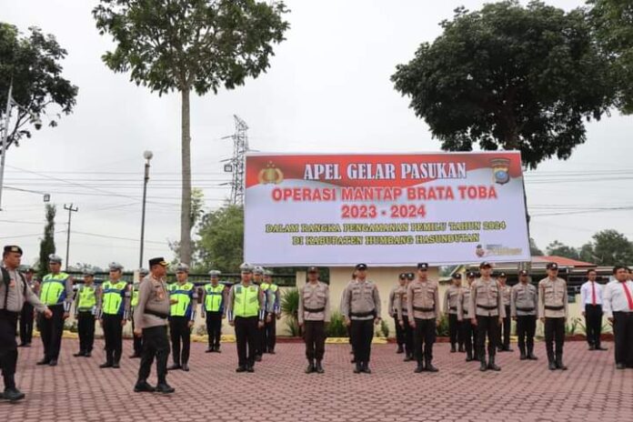 Humbahas, Lintangnews.com | Kapolres Humbang Hasundutan (Humbahas), AKBP Hary Ardianto memimpin apel gelar pasukan Operasi Mantab Brata Toba 2023-2024 di Polres setempat, Jalan Tapian Nauli, Kecamatan Lintongnihuta, Selasa (17/10/2023).