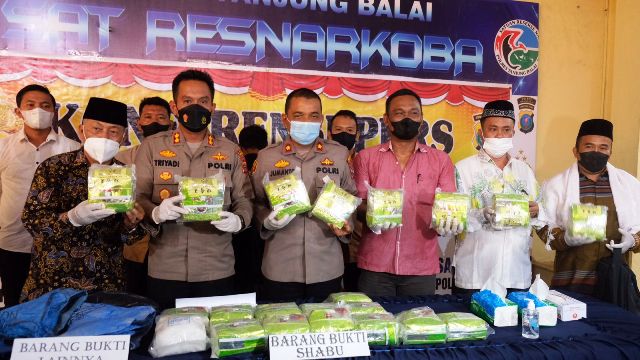 Turut hadir dalam konferensi pers itu, Wakapolres, Kompol Jumanto, Kasat Narkoba, Iptu S Tambunan, KBO Sat Narkoba, Iptu Demonstar, Ketua FKUB, Haidir Siregar, Sekretaris MUI, Abdullah Rahim dan Tokoh Agama, Ustads Abdi Khairul Abdi.
