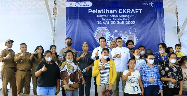Sandiaga menjelaskan, pelatihan ini merupakan kerja sama Kementerian Pariwisata dan Ekonomi Kreatif (Kemenparekraf) dengan Pemkab Samosir, serta menggandeng komunitas di Samosir memberikan pelatihan dan pendampingan kepada masyarakat Desa Situngkir, untuk memanfaatkan bahan-bahan dan limbah dijadikan barang seni yang memiliki nilai ekonomi dan membantu perokonomian.