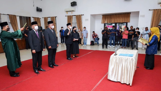 Selanjutnya pengambilan sumpah dan janji jabatan ketiga direksi yang dipimpin Susanti. Dilanjutkan penandatanganan dokumen pelantikan dan berita acara pelantikan. Kemudian, penyerahan SK pelantikan.