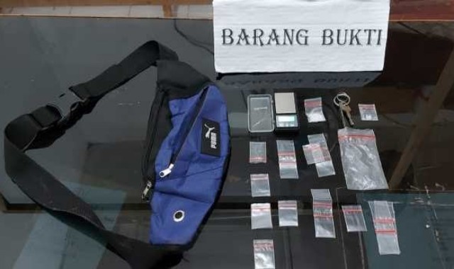 Saat petugas memeriksa sepeda motor tersangka, ditemukan 1 buah tas pinggang, dan dibuka isinya ditemukan plastik kecil klip transparan, 1 buah timbangan elektrik dan 1 bungkus paket sabu siap edar.