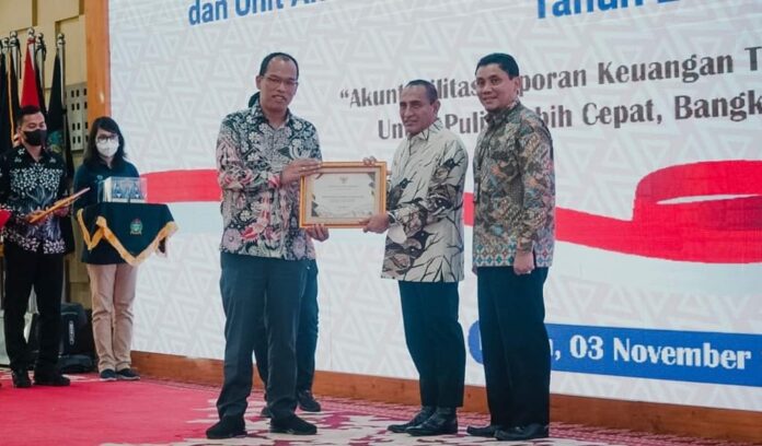Itu diterima pada acara penyerahan penghargaan opini WTP dan Laporan Keuangan Tingkat Unit Akuntansi Pembantu Pengguna Anggaran-Wilayah (UAPPA-W) Tahun 2022 di Aula Tengku Rizal Nurdin, Kota Medan, Kamis (3/11/2022).