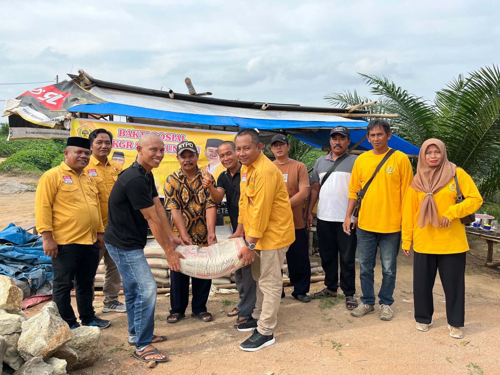 SIMALUNGUN, Lintangnews.com | Musyawarah Kekeluargaan Gotong Royong (MKGR) Kabupaten Simalungun memberikan bantuan sejumlah sak semen kepada masyarakat Nagori Mariah Jambi Kecamatan Jawa Maraja Bah Jambi yang sedang melakukan pembangunan Jembatan secara swadaya, Jumat (13/06/2025).
