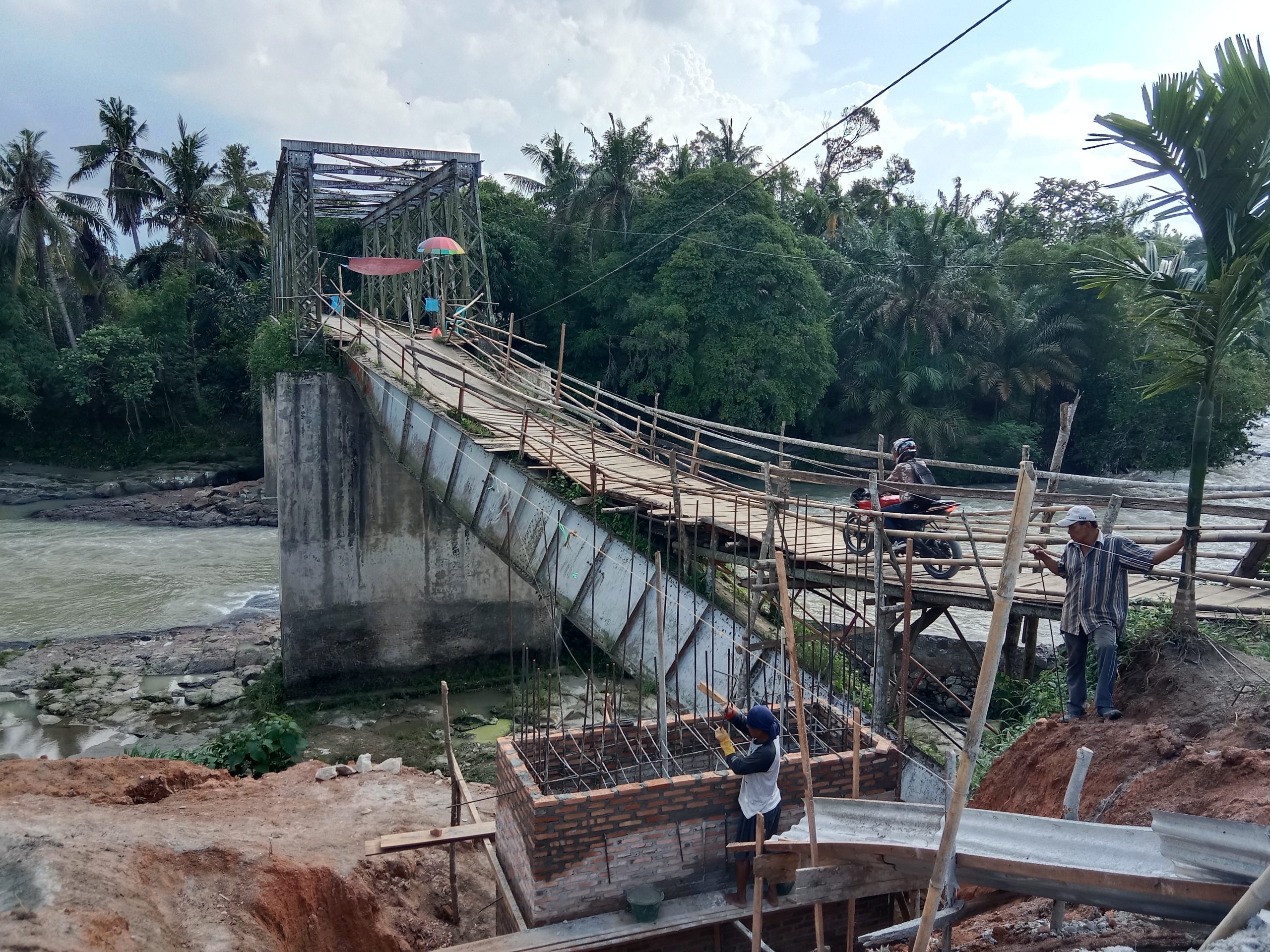 “Ini sudah pakek besi juga cor-an. Jadi lebih kuat lah nanti dan diperkiran bisa menahan beban kurang dari 5 ton,” Ujarnya sembari mengaku saat ini meraka sudah membangun jembatan sementara yang dibuat kayu dan hanya bisa diminta tidak kenderaan roda 2.