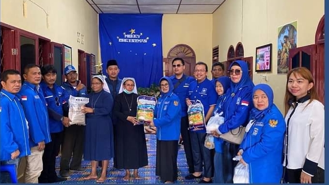 Siantar, Lintangnews.com | Ketua DPD Partai Amanat Nasional (PAN) Kota Siantar, Susanti Dewayani bersama jajaran pengurus DPC membagikan paket sembako dan bingkisan Natal yang diberikan kepada Panti Asuhan di 3 Kecamatan, Jumat (30/12/2022).