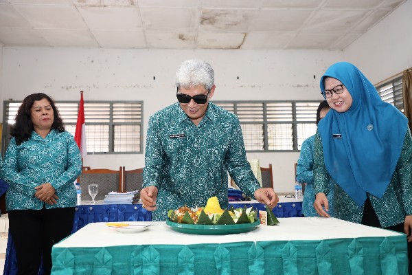 Siantar, Lintangnews.com| Ketua TP PKK Kota Pematang Siantar H Kusma Erizal Ginting SH merasa terharu karena ia tidak menduga akan mendapat kejutan nasi tumpeng hari ulang tahun (HUT)-nya ke-64. Kejutan tersebut diberi para pengurus TP PKK Kota Pematang Siantar di acara Agenda Bulanan dan Rapat Kerja (Raker) TP PKK Kota Pematang Siantar, di Kantor TP PKK Kota Pematang Siantar, Jalan Porsea, Selasa (09/01/2024) pagi.