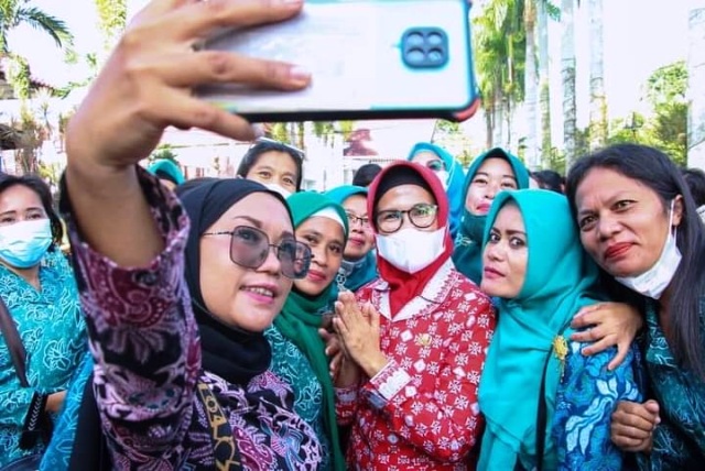 Tanpa sungkan, sejumlah tim pendamping keluarga mengajak untuk berfoto selfie. Dengan senang hati, Susanti menyanggupi dan melayani permintaan berfoto ria tersebut.