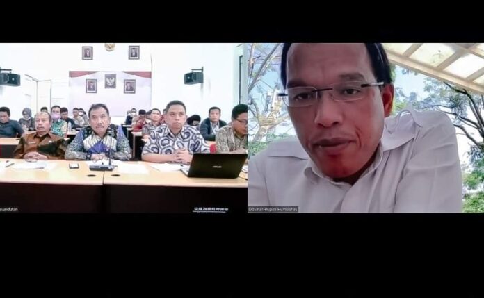 Humbahas, Lintangnews.com | Bupati Humbang Hasundutan (Humbahas) Dosmar Banjarnahor bersama jajarannya mengikuti rapat kerja (raker) meningkatkan taraf kelola pemerintahan , secara virtual.