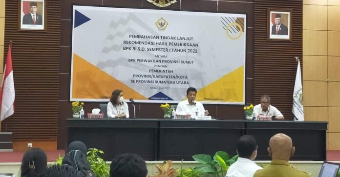 Hal ini disampaikan pada pembahasan Tindak Lanjut Rekomendasi Hasil Pemeriksaan (TLRHP) Badan Pemeriksa Keuangan (BPK) semester I tahun 2022 antara BPK Perwakilan Provinsi Sumatera Utara dengan Pemerintah Provinsi/Kabupaten/Kota se-Sumut, Senin (27/6/2022) di Auditorium Kantor BPK Sumut.
