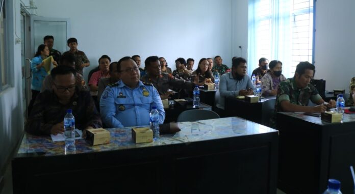 Samosir, Lintangnews.com | Bupati Samosir, Vandiko T Gultom diwakili Kepala Badan Kesatuan Bangsa dan Politik (Kesbangpol), Dumosch Pandiangan memimpin rapat kerja (raker) Tim Pengawasan Orang Asing (Timpora) di Aula kantor Kesbapol, Kamis (1/9/2022).