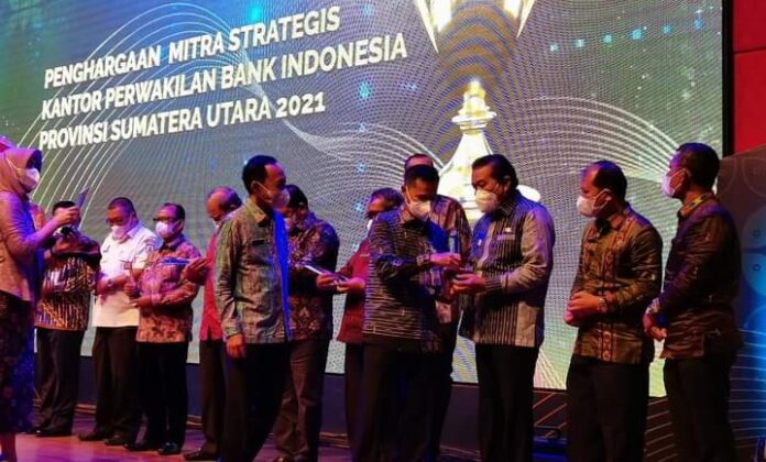 Taput, Lintangnews.com | Dalam Pertemuan Tahunan Bank Indonesia 2021, Bupati Tapanuli Utara (Taput), Nikson Nababan menerima penghargaan selaku pemerintah daerah pendukung program klaster ketahanan pangan.