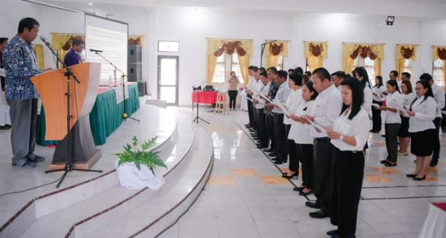 Humbahas, Lintangnews.com | Bupati Humbang Hasundutan (Humbahas), Dosmar Banjarnahor diwakili Asisten Administrasi Umum, Janter Sinaga melantik pengurus Lembaga Pembinaan dan Pengembangan Pesparani Katolik Daerah (LP3KD) periode 2022-2027, Jumat (4/3/2023) di Pendopo kantor Bupati setempat.