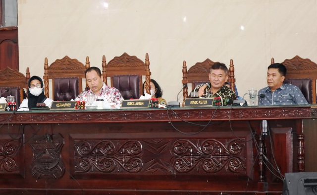 Pimpinan DPRD Siantar dan Wali Kota, Susanti Dewayani saat paripurna Ranperda APBD tahun 2023 beberapa waktu lalu