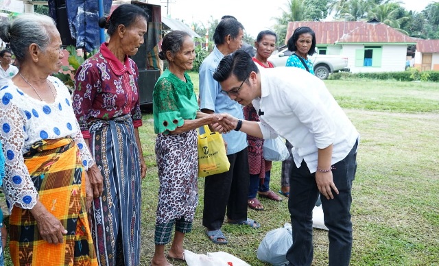 Di sela-sela perayaan Natal, Bane juga membagikan 100 paket sembako dan 300 kemasan minyak goreng.
