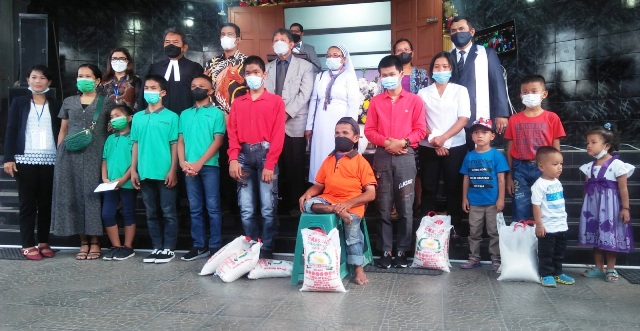 Pada kesempatan itu, Hefriansyah didampingi Ketua Umum Panitia, Togar Sitorus dan pengkotbah, Pdt M Rumanja Purba juga memberikan tali asih berupa beras kepada Aanak-anak Panti Asuhan maupun penyandang disabilitas.
