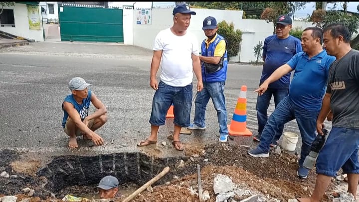 Sementara di lokasi tampak Direktur Teknik (Dirtek) Perumda Tirtauli, Andarianto memimpin langsung proses perbaikan tersebut. (Elisbet)