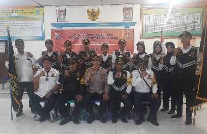 Batubara, Lintangnews.com | Kapolsek Indrapura, AKP Jonni H Damanik melaksanakan pengukuhan 10 orang personil Pokdarkamtibmas Desa Aras, Kecamatan Air Putih, Kabupaten Batubara, Rabu (19/7/2023).