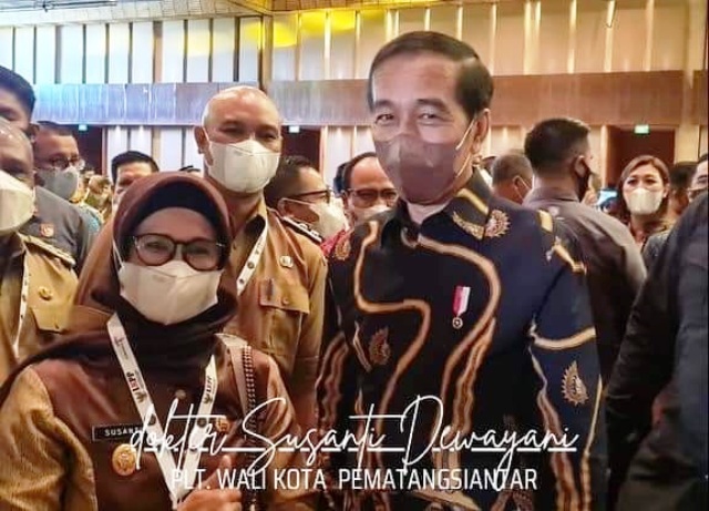 Plt Wali Kota Siantar, Susanti Dewayani saat foto bersama dengan Presiden Joko Widodo.