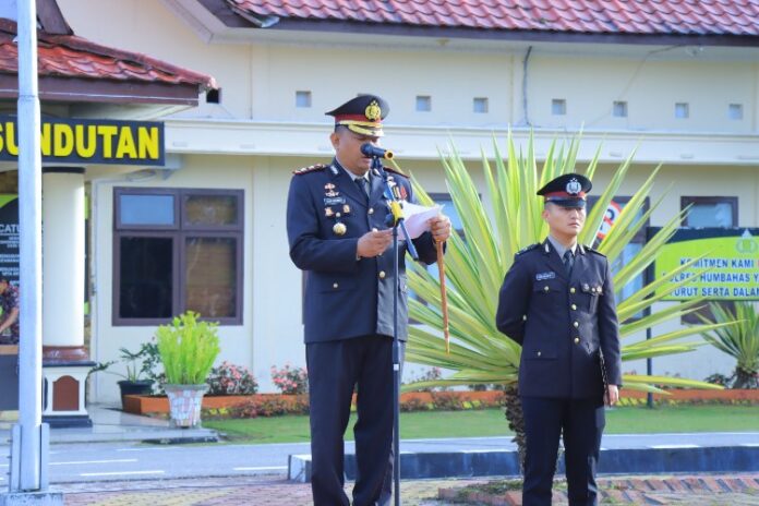 Upacara itu dipimpin oleh Kapolres, AKBP Hary Ardianto, serta diikuti seluruh Pejabat Utama (PJU), Perwira, Bintara dan Aparatur Sipil Negara (ASN) Polres Humbahas.