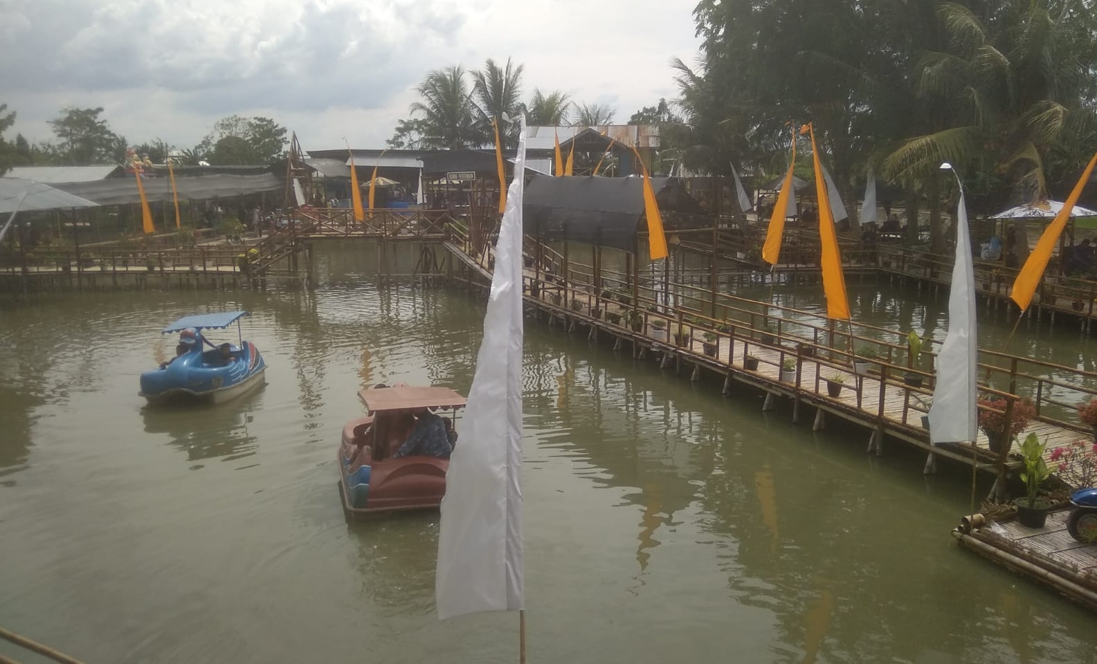 Selain bisa melihat pesawat terbang turun naik dari jarak dekat melalui pondok yang disediakan, para pengunjung bisa juga naik sampan angsa yang juga disediakan pengelola wisata. Ada juga kolam renang untuk anak-anak.