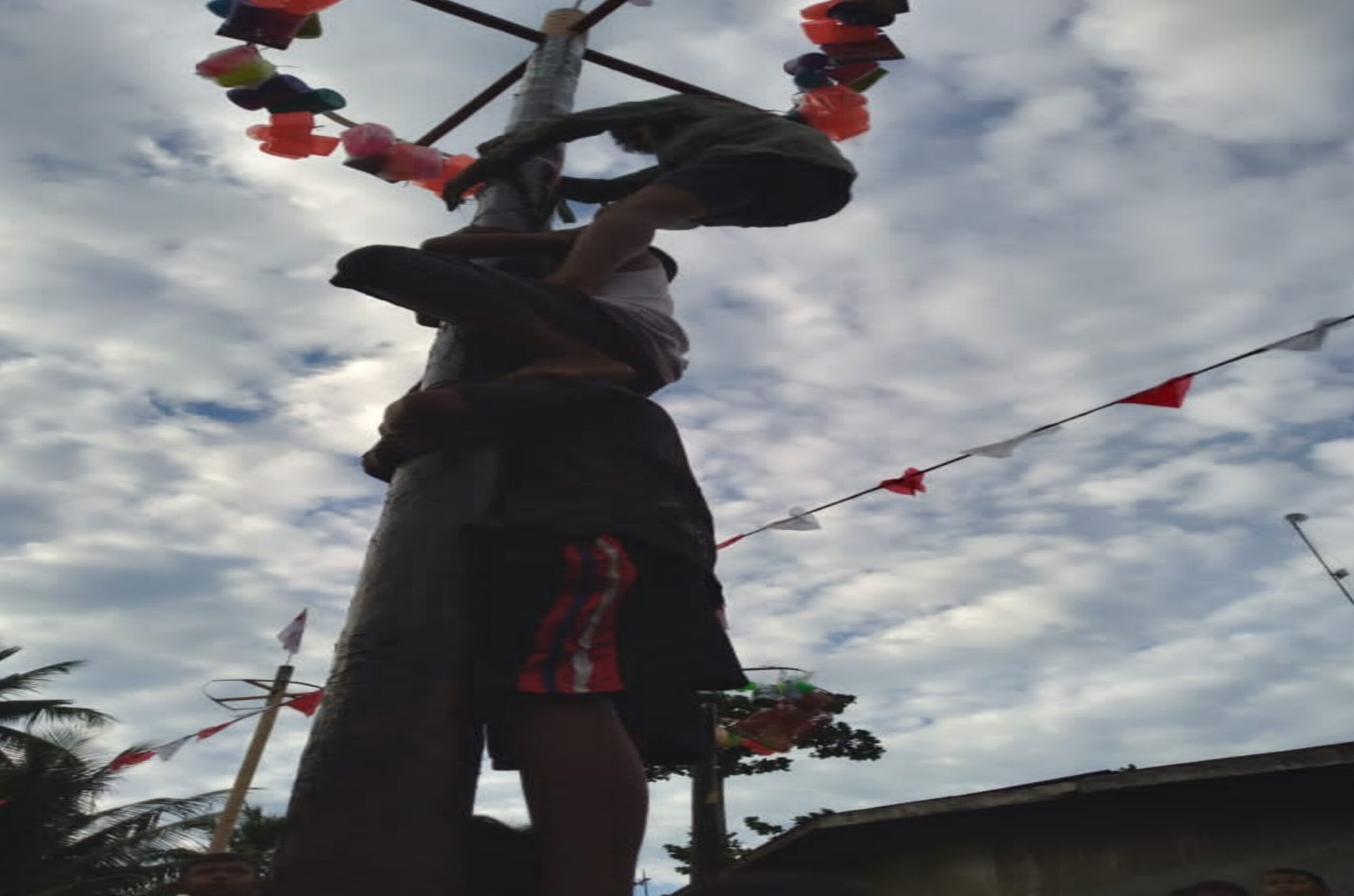 Ada 2 buah batang pinang yang digantungi hadiah membuat para anak-anak bersemangat ingin mendapatkan hadiah. Walaupun terinjak-injak dan belepotan minyak kotor, tampak tak mengendurkan semangat di perayaan Hari Ualng Tahun (HUT) Kemerdekaan Indonesia ke 77 tahun.