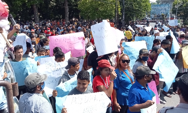 Massa juga membawa puluhan poster dengan berbagai tulisan. Seperti ‘Rizal n Boy Kalian Cuma Perusak, Tangkap dan Periksa Tim Penilai Kinerja (TPK) Sumber Masalah Kota Siantar, DPRD Siantar Dewan Terhormat Segera Berhentikan Wali Kota, Rizal Bukan Wali Kota’.