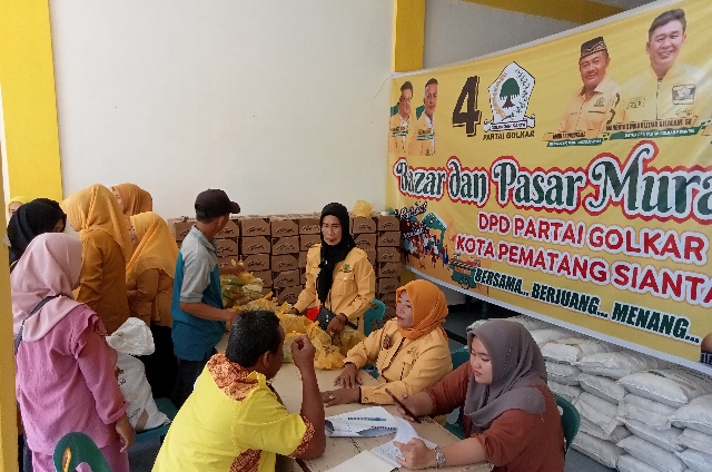 Ketua Partai Golkar Siantar, Mangatas Silalahi didampingi Ketua Panitia Bazar dan Pasar Murah, Surianto mengatakan, kegiatan ini dilaksanakan berdasarkan instruksi dari Partai Golkar Provinsi Sumatera Utara.