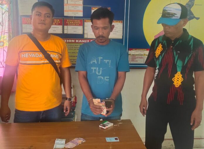 Turut diamankan barang bukti berupa 1 unit handphone (HP) merk Oppo A-15 casing warna hitam dan uang tunai sebesar Rp 47 ribu.