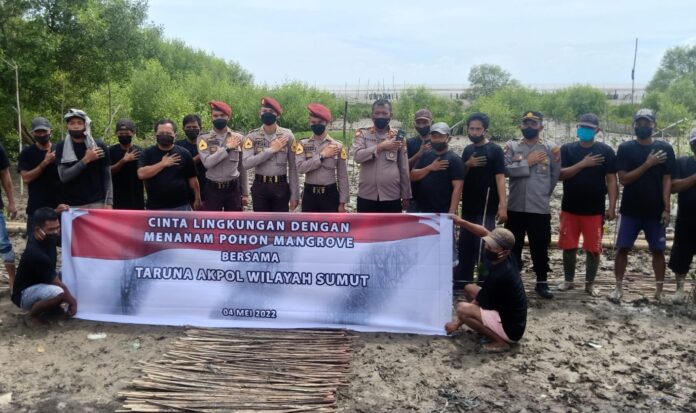 Mewakili Taruna Akpol, Ajun Brigadir Taruna, Harga Sitorus mengucapkan terima kasih pada Kapolsek Pantai Labu dan semua pihak yang telah berpartisipasi dalam penanaman pohon mangrove.